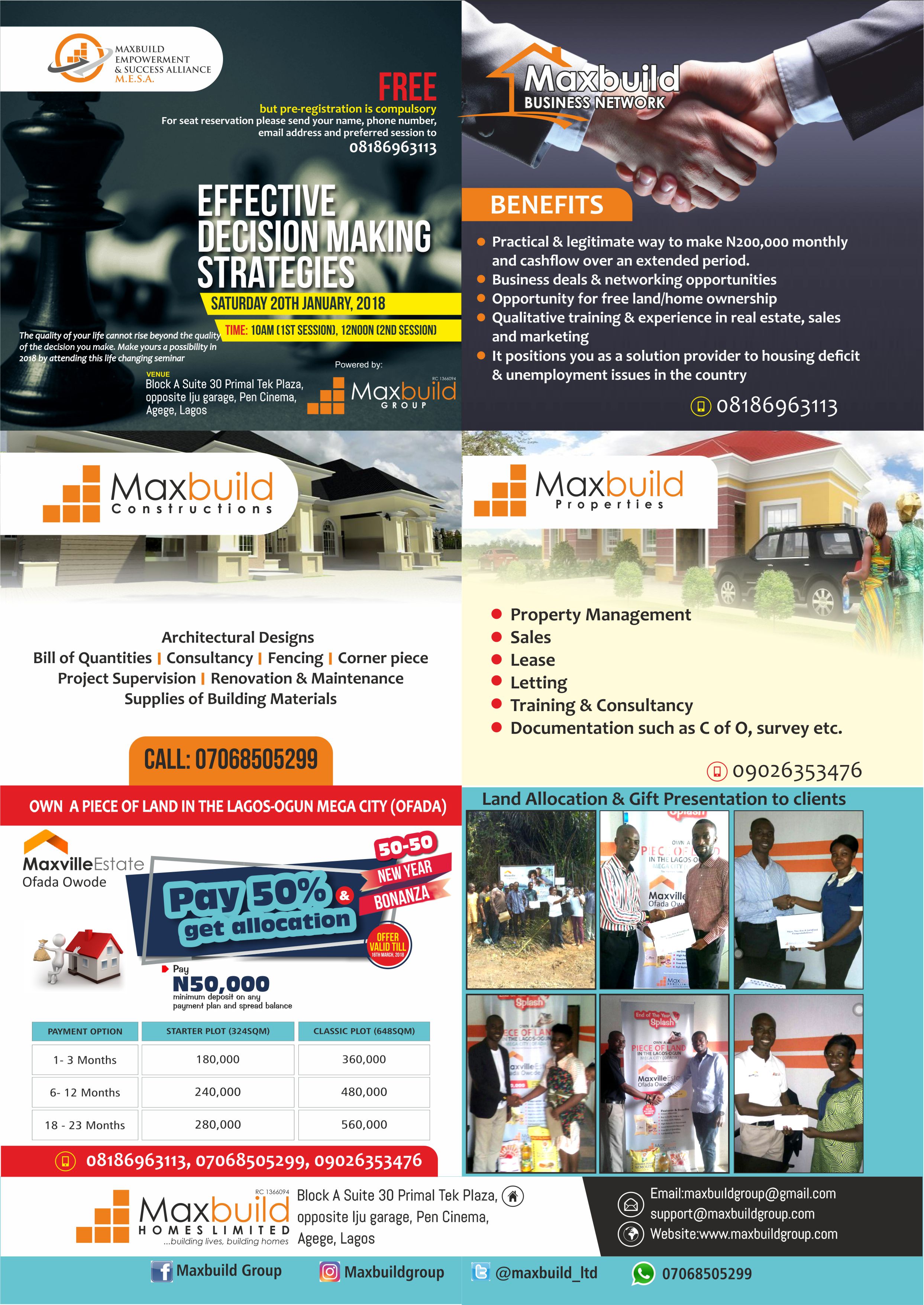 The Maxbuild Empowerment & Success Alliance is a subsidiary of our company that organises trainings, seminars (both free and fee based) and conferences, Prints and Media publications.